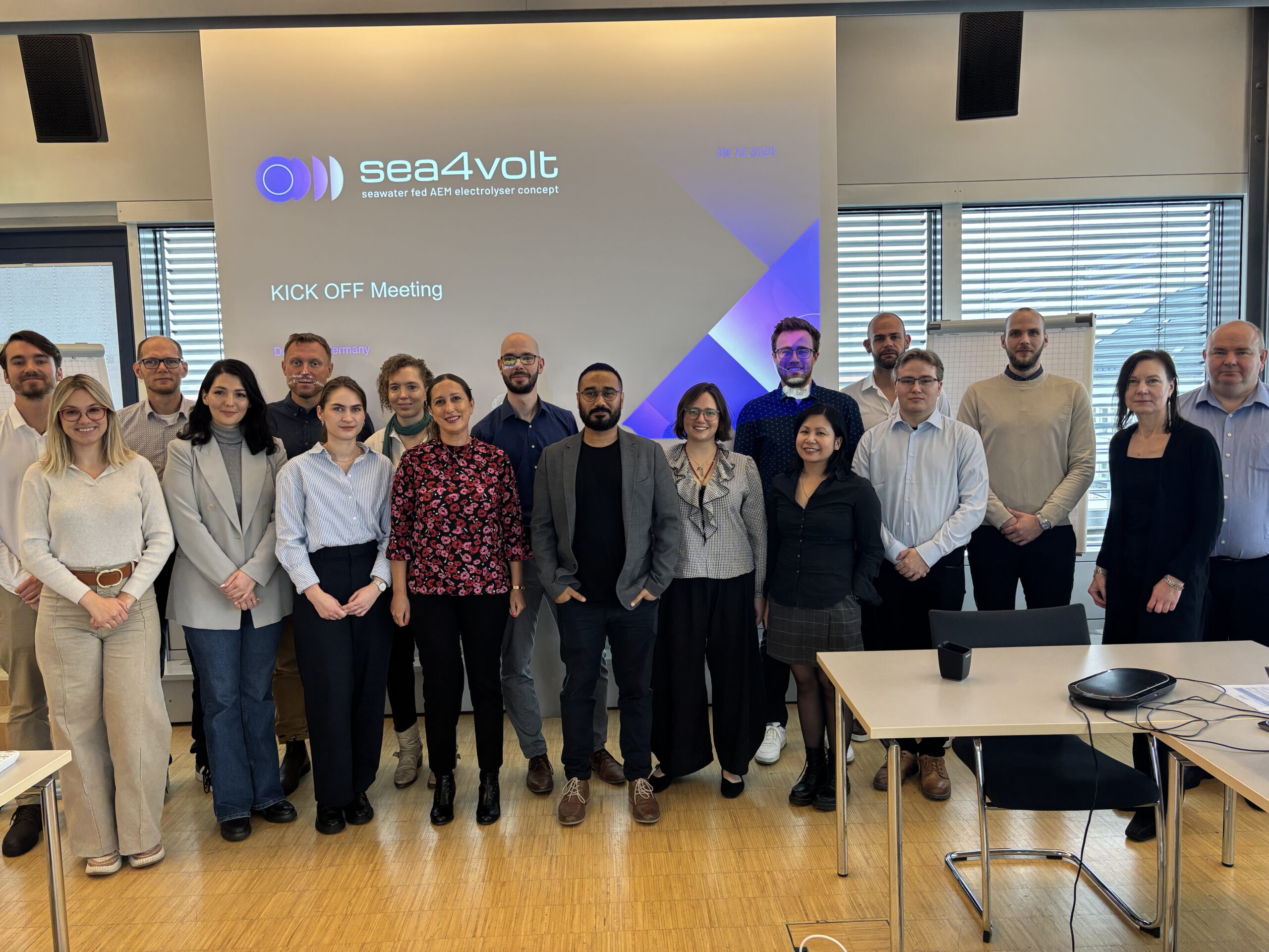 Co-funded by the European Union and the Clean Hydrogen Partnership, Sea4Volt develops a new low-temperature Anion Exchange Membrane (AEM) electrolyser that produces green hydrogen directly from seawater.